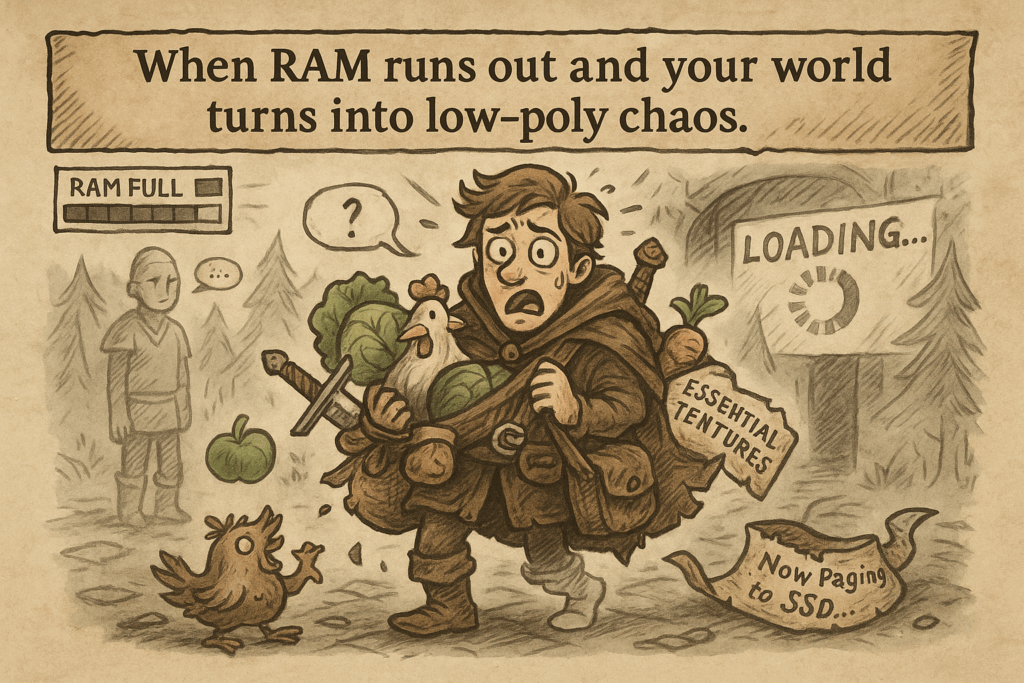When your RAM fills up, your system starts panicking like a player who’s picked up one too many cabbages. It tries to offload old data and make space by dumping chunks of what it thinks you won’t need. Sometimes it gets it right. Other times? You’re staring at your character’s torso while the rest of their armour takes 12 seconds to render in.